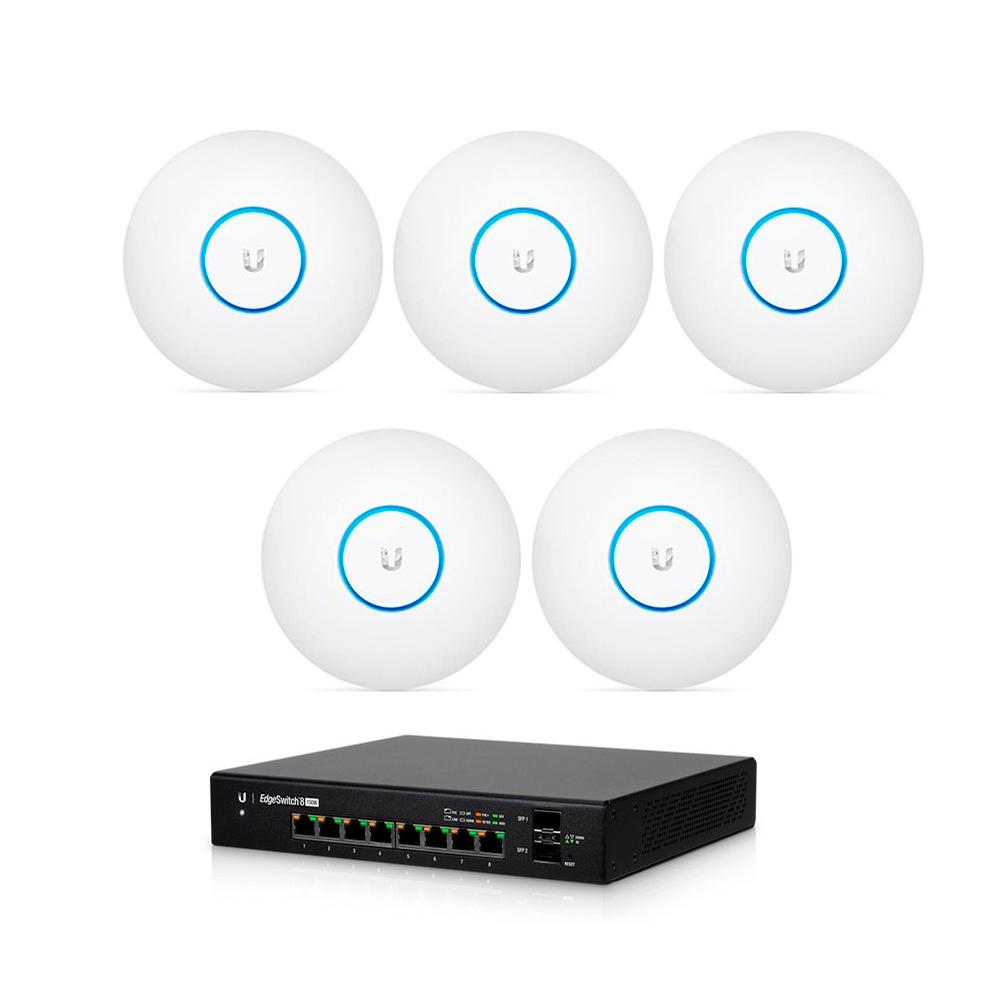 The UAP-AC-PRO-5 UniFi Access Point Enterprise Wi-Fi System from Ubiquiti Networks is a scalable enterprise access point solution designed to be easily deployed and managed. It supports the 802.11ac Wi-Fi standard with speeds of up to 1300 Mb/s in the 5 GHz radio band, and up to 450 Mb/s in the 2.4 GHz radio band. The Wi-Fi system offers simultaneous dual band operation with 3x3 MIMO technology for each band. It has a range of up to 400' and two Gigabit Ethernet ports. This UniFi Access Point (AP) has a sleek design and can be easily mounted to a ceiling tile or wall, using the included mounting hardware.