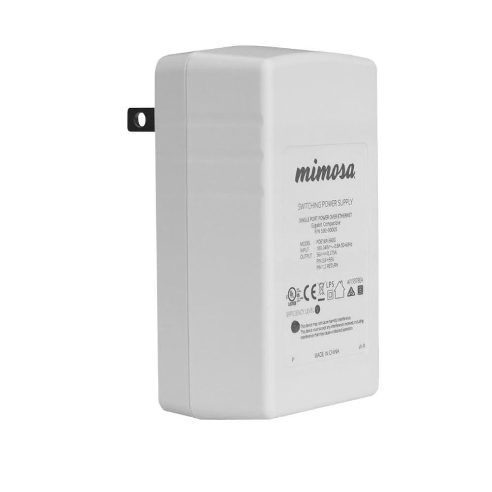 The Mimosa Gigabit 56V passive PoE wall plug is compact and clutter-free, eliminating the typical installation mess of power strips and extension cords.
