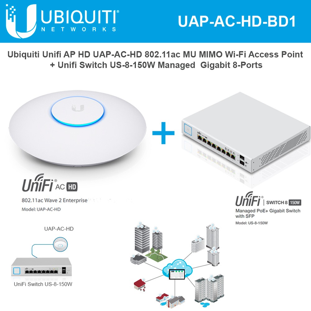 The US-8-150W UniFi Managed PoE+ Gigabit 8 Port Switch with SFP from Ubiquiti Networks it is easy to expand the capacity and reach of an existing network. This switch features 8 Gigabit Ethernet ports along with 2 SFP ports making it easy to incorporate high speed local storage networks into the configuration. In addition to Gigabit Ethernet connectivity, the network ports support 802.3af/at PoE networking standards designed to power devices such as VoIP phones, access points, IP cameras, and more.